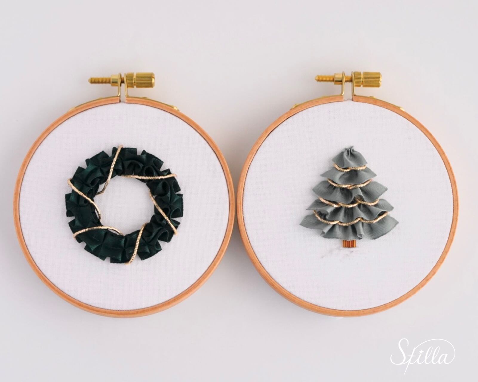 ・刺繍枠2個(リース・ツリーが刺繍してあるもの)