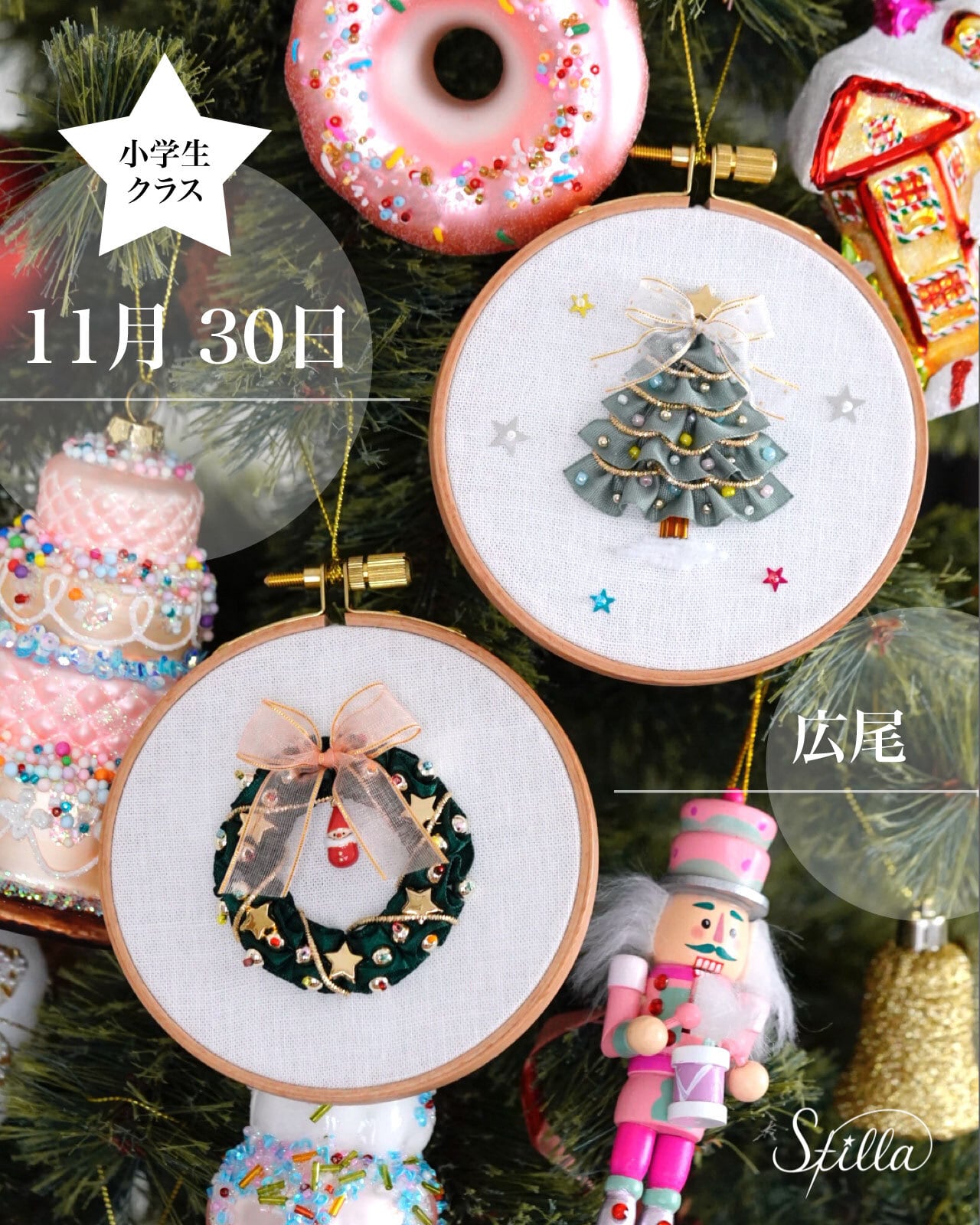 ツリーとリース、2つのオーナメントを作る特別レッスンです。